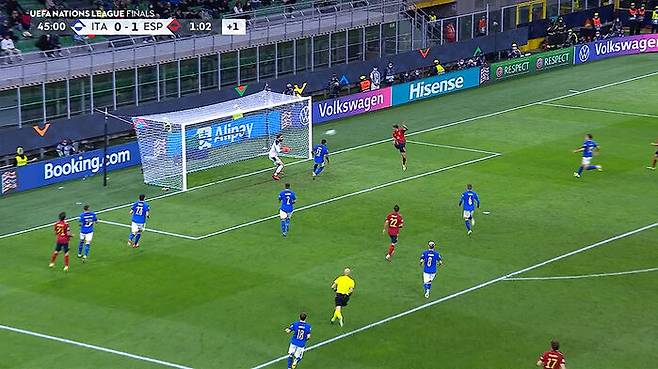 전반을 2대 0으로 뒤진 이탈리아는 후반 38분 스페인의 패스 실수를 틈타 펠레그리니가 1골을 만회했지만 승부를 뒤집기에는 역부족이었습니다.