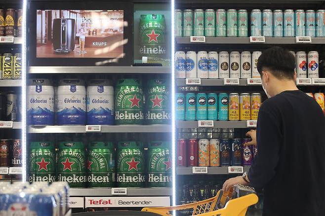 | ▲ 2021년 8월 2일 서울의 한 대형마트에서 국산 맥주를 고르는 시민. |