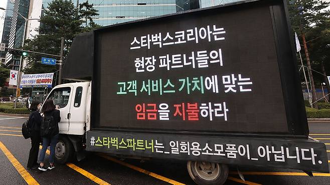 오늘(9일) 외식업계에 따르면 스타벅스 트럭 시위를 주도한 '2021 스타벅스코리아 트럭 시위 총대 총괄'은 직장인 익명 앱 '블라인드'를 통해 "트럭 시위의 대표로서 공식적으로 답변드린다"며 "민주노총은 트럭 시위와 교섭을 시도하지 말라"고 선을 그었습니다.