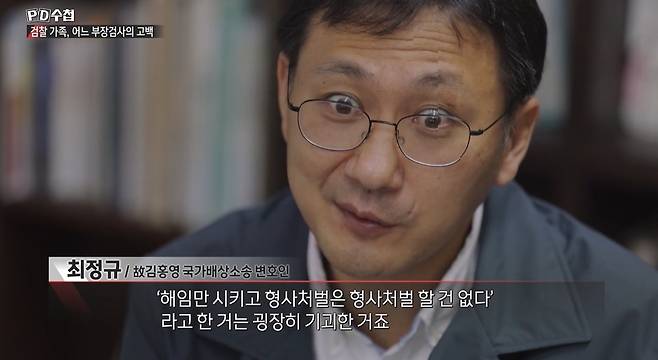 - 지난 5일 방송된 MBC < PD수첩 > '검찰 가족, 어느 부장검사의 고백' 편을 취재하셨잖아요. 방송 끝낸 소회가 어떤가요?