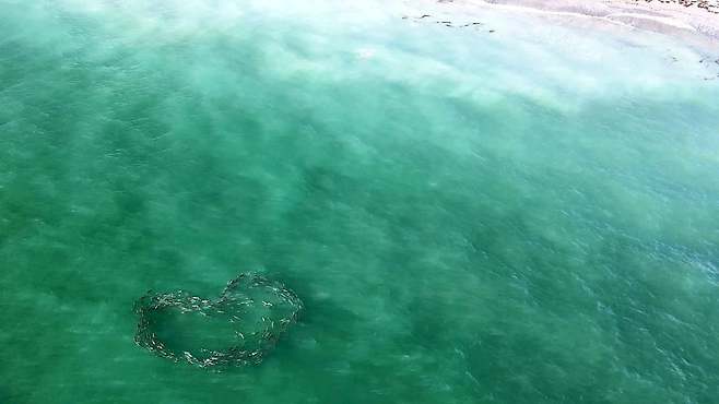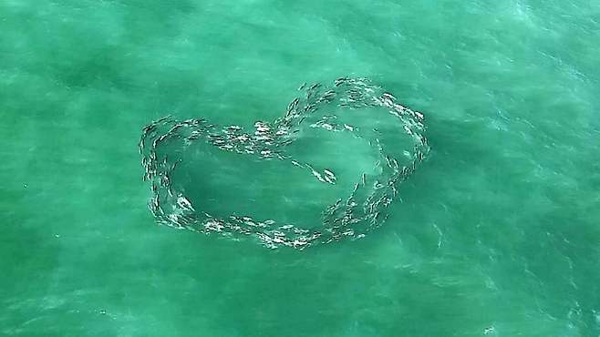(영상) 하트(♡) 모양으로 무리 짓는 물고기 떼 포착