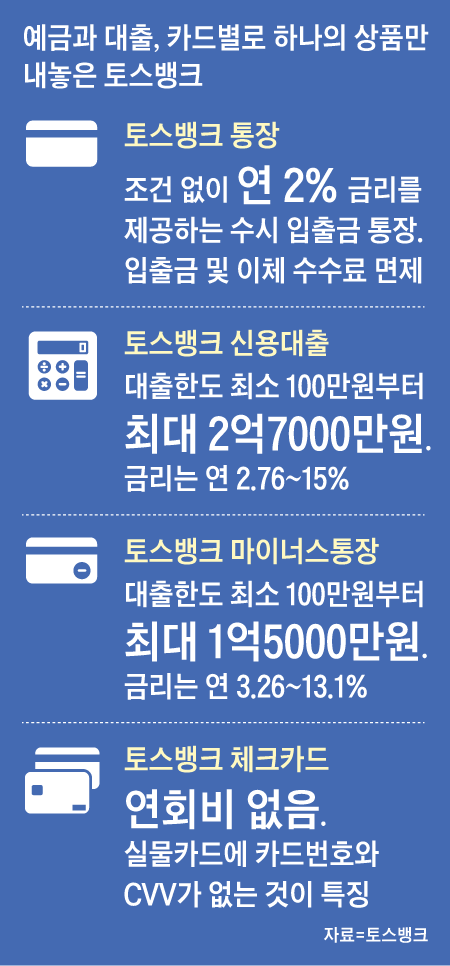 토스뱅크 계좌를 개설하면 대출 신청을 할 수 있다. 그런데 현재 대출 증가 속도가 너무 빠르다는 것이 문제 되는 것이다. 지난 5~8일 단 나흘 만에 3000억원의 신용대출이 실행됐다. 금융 당국이 정한 토스뱅크의 올해 대출 총량(5000억원)의 60%에 달한다. 이런 추세라면 일주일도 안 돼 대출 한도가 바닥나 서비스를 중단할 수밖에 없다. 이런 부담 때문에 계좌 개설 속도를 늦추고 있는 셈이다.