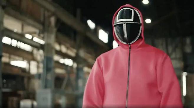 이 광고는 누가 봐도 '오징어 게임'을 연상할 정도로 드라마 속 패션을 그대로 가져왔습니다.