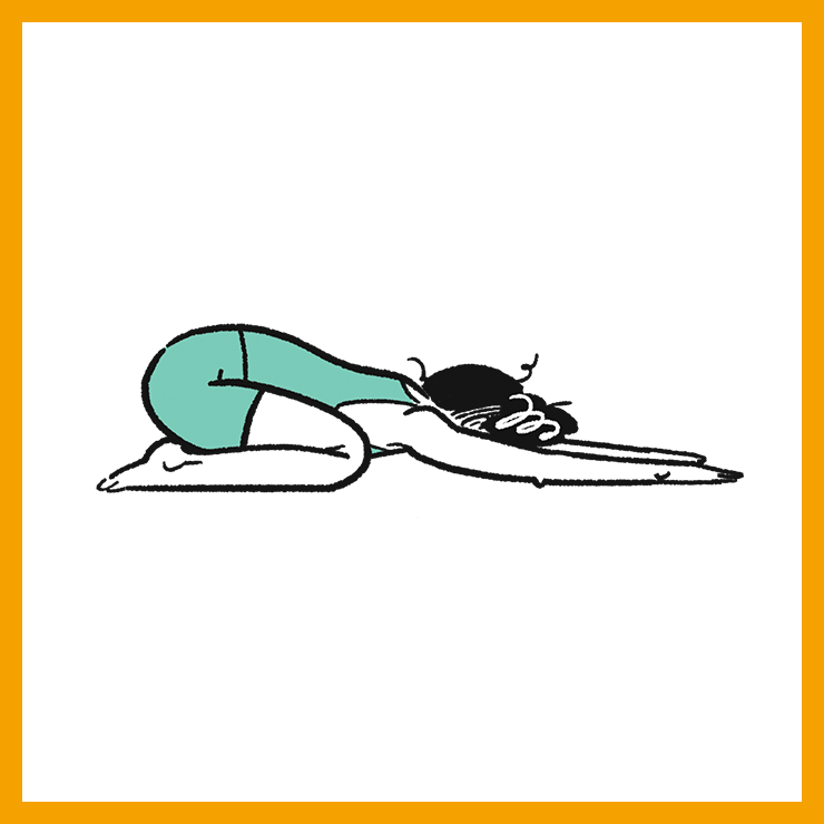 ① 정면을 보고 무릎을 꿇고 앉은 자세로 준비. 양팔을 일직선으로 곧게 뻗으며 상체를 천천히 바닥을 향해 숙인다.
