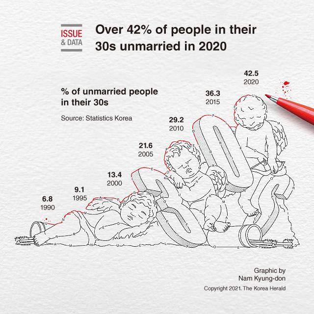 [Graphic News] Over 42% of people in their 30s unmarried in 2020
