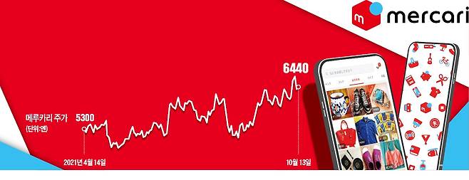 2013년 설립된 메루카리는 일본의 첫 유니콘 기업(기업가치 10억달러 이상 스타트업)이다. 2018년 도쿄증권거래소에 상장했다. 13일 종가는 6440엔. 이날 기준 시가총액은 1조273억엔에 달했다. 올 들어 상승률은 40.77%에 달한다. 코로나19로 주가가 폭락했던 저점 대비로는 314% 올랐다.