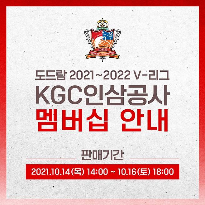 (엑스포츠뉴스 조은혜 기자) KGC인삼공사 프로배구단이 2021~2022시즌 멤버십 회원을 모집한다.