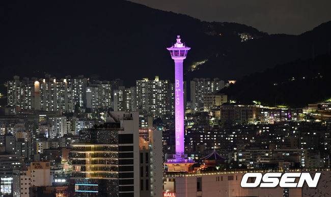 [OSEN=부산, 이대선 기자] 방탄소년단(BTS) 지민의 생일을 맞아 13일 오후 부산 중구 용두산공원 부산타워에서 특별 조명쇼가 펼쳐졌다.