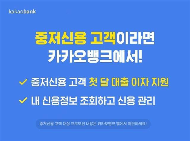 ●카카오뱅크, 중저신용자 첫 달 이자 지원 연장