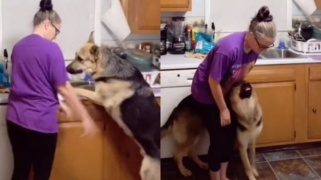 미국에 살고 있는 티나 씨는 최근 설거지를 하던 중 반려견 맥스의 이상 행동을 포착했습니다. 평소와 다름없이 바닥에 엎드려 있던 맥스가 갑자기 벌떡 일어나 티나 씨의 설거지를 방해하기 시작한 겁니다.