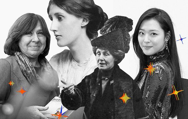 그러다 저도 ‘좋아하는 언니들’을 떠올렸어요. 결이 많이 다르지만, 이 언니들이야말로 지금의 제가 잘 먹고 잘 사는 데 큰 도움을 주는 언니들이에요. 여성이 글을 쓰기 위해서는 돈과 자기만의 방이 있어야 한다고 말한 버지니아 울프 언니, 강한 투쟁으로 여성 참정권 운동을 이끈 에멀라인 팽크허스트 언니, 전쟁을 여성의 시선으로 재조명하고 사소한 것으로 묻혔던 많은 목소리들을 끌어내 ‘목소리 문학’을 창시한 스베틀라나 알렉시예비치 언니 등. 그리고 지금도 묵묵히 성평등을 위해 이야기를 멈추지 않는 많은 언니들이 있습니다.