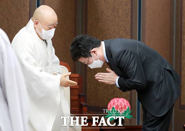 이날 유 후보는 조계종 총무원장인 원행 스님을 예방했다.