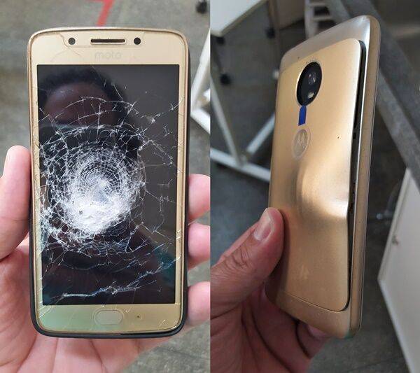 의료진은 환자가 고통을 호소하는 엉덩이 쪽을 살피다가 놀라운 사실을 알아냈습니다. 환자의 바지 주머니에는 환자 대신 총알을 정통으로 맞아 심하게 부서지고 휘어진 휴대전화가 들어 있었습니다.