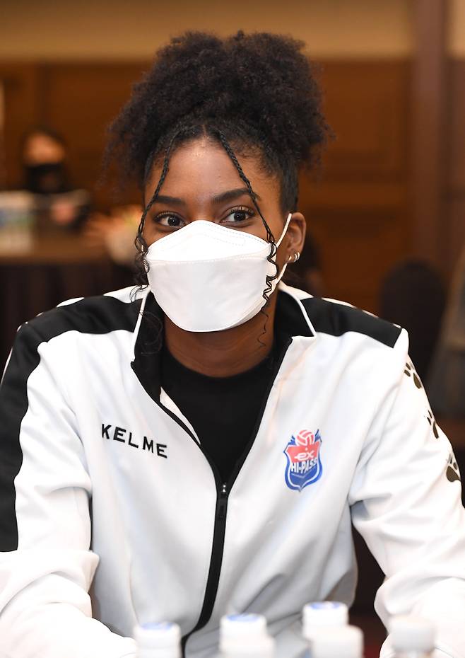 [서울=뉴시스] 한국도로공사 켈시가 14일 서울 청담 리베라호텔에서 열린 도드람 2021-2022 V-리그 여자부 미디어데이에 참석해 있다. (사진=KOVO 제공) 2021.10.14. photo@newsis.com *재판매 및 DB 금지