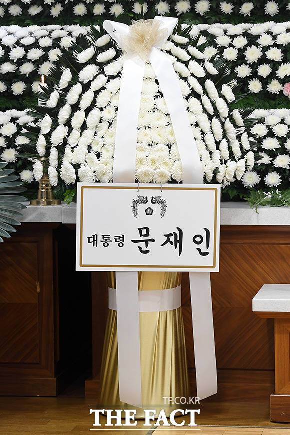 고 이완구 전 총리 빈소에 놓인 문재인 대통령 근조화환 [포토]