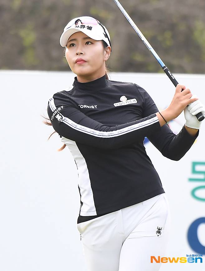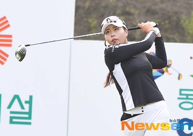 이날 프로골퍼 성유진이 10번홀에서 티샷을 하고 있다.