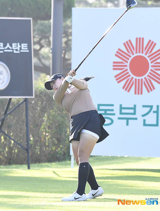 이날 프로골퍼 이효린이 10번홀에서 티샷을 하고 있다.