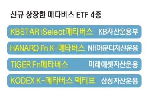 이에 따라 KBSTAR iSelect메타버스와 HANARO Fn K-메타버스, TIGER Fn메타버스 주가는 상장 이후 이틀 연속 오름세를 기록했고 KODEX K-메타버스 액티브 ETF는 하루만에 오름세로 돌아섰다.