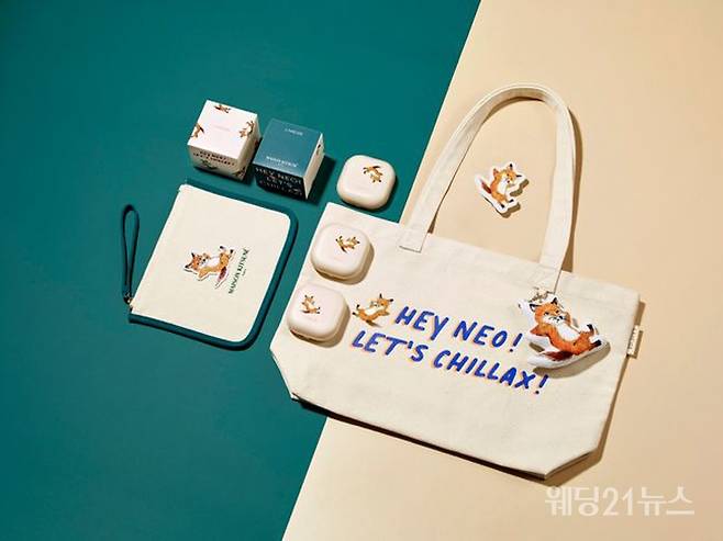 라네즈X메종키츠네 한정판은 네오 쿠션 리미티드 에디션 2종(매트 21N, 23N)과 이번 협업을 위해 제작한 굿즈 3종(에코백, 파우치, 스마트톡)으로 구성했다.