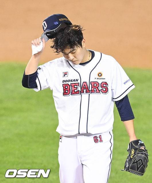6회초 1사 1,3루 KT 심우준에게 1타점 적시타를 허용한 두산 선발투수 최원준이 교체되고 있다. 2021.10.14 / soul1014@osen.co.kr