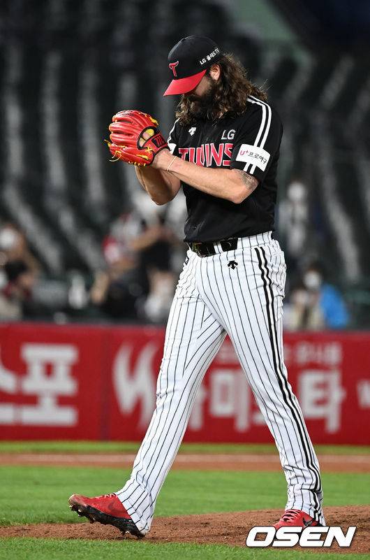 6회말 2사 1,2루에서 LG 켈리가 롯데 전준우를 직선타 아웃으로 처리하고 박수치고 있다. 2021.10.14 /sunday@osen.co.kr