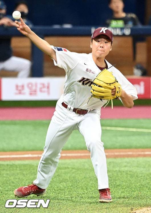 9회초 1사 주자 1,2루 NC 알테어의 투수를 때리는 타구때 타구에 맞은 키움 김준형이 1루로 송구하고 있다. 21.10.14/rumi@osen.co.kr