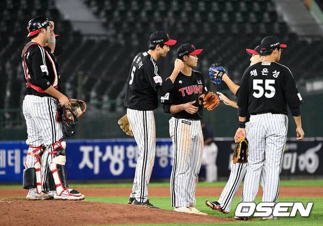 경기 종료 후 LG 선수들이 승리의 기쁨을 나누고 있다. 2021.10.14 /sunday@osen.co.kr