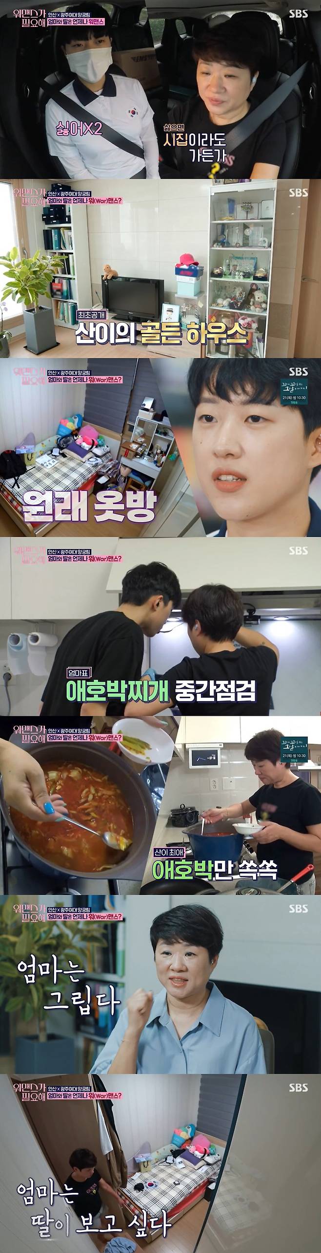 안산은 어머니가 한상 푸짐하게 차려준 반찬과 애호박 찌개를 맛있게 먹었다. 안산의 어머니는 식사 후 기숙사에 복귀해야 하는 안산에게 "또 먹고가"라고 아쉬움을 드러내며 애호박 찌개를 더 챙겨줬다. 안산 어머니는 "딸이 살이 너무 빠져서 짠하다. 가죽밖에 없어서 갈비로 기타 치게 생겼다"라고 표현해 웃음을 안겼다. 안산이 기숙사로 떠난 후에는 "갈 때는 잘 갔다 오라고 하는데 가고 나면 허전하다. 그 다음날까지 보고 싶다"라며 울컥했다.