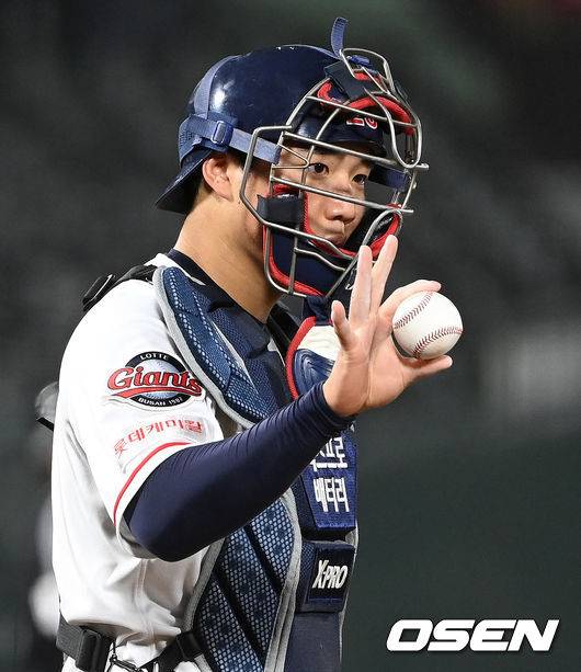 7회초 롯데 손성빈이 볼체인지를 요청하고 있다. 2021.10.14 /sunday@osen.co.kr