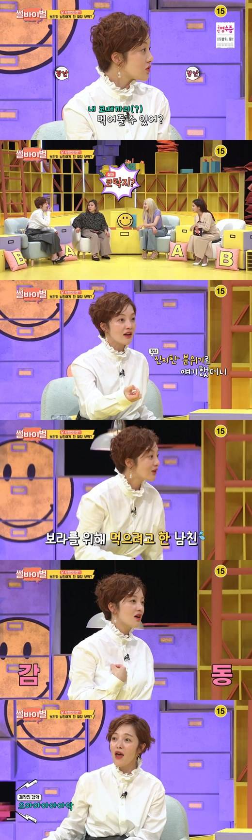 이날 방송에는 안하무인 훈장 남자친구의 사연이 그려졌다. 이를 들은 황보라는 "저는 제가 요구한 적이 있다. 나를 정말 사랑한다면 내 코딱지를 먹어줄 수 있냐고 했다"라고 말해 출연진들을 깜짝 놀라게 했다.