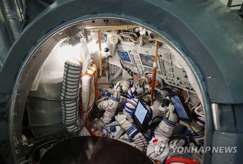 epa09523771 Roscosmos cosmonaut Alexander Misurkin and space flight participants Yusaku Maezawa and Yozo Hirano attend a training session ahead of the expedition to the International Space Station, in Star City, Russia, 14 October 2021. Japanese entrepreneur Yusaku Maezawa and his production assistant Yozo Hirano, led by Roscosmos cosmonaut Alexander Misurkin, will take part in a mission to the International Space Station (ISS) scheduled for 08 December 2021. EPA/SHAMIL ZHUMATOV / POOL