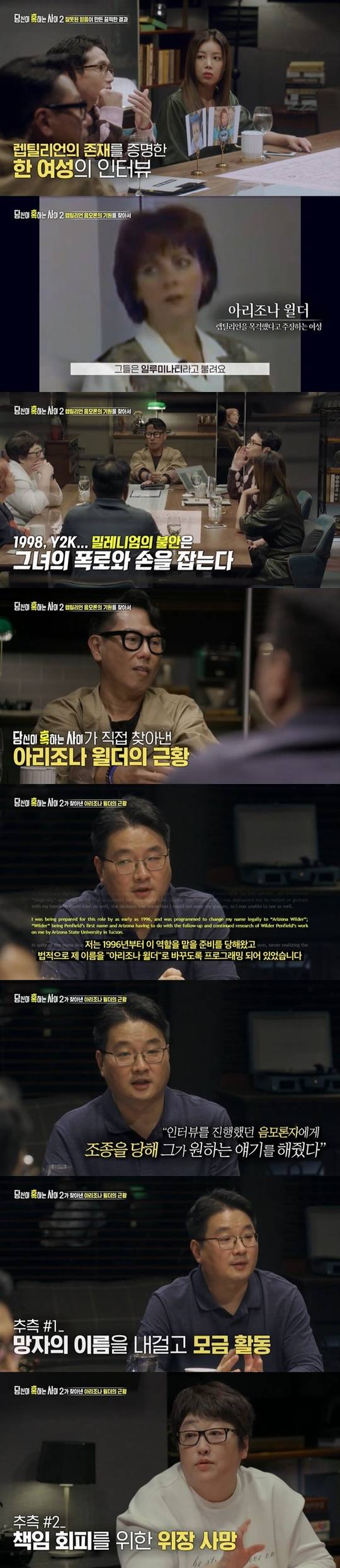 10월 14일 방송된 SBS ‘당신이 혹하는 사이 시즌2’에서는 파충류 인간, 렙틸리언 음모론을 다뤘다.