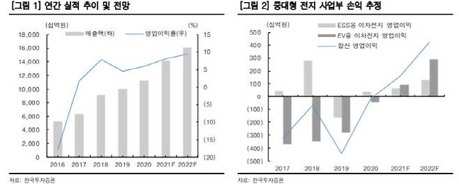 소형전지는 매출액이 전분기대비 15.4% 늘어난 1조3000억원으로 추정했다. 예상 영업이익률도 14.5%로 전사 이익 증가에 큰 기여를 하고 있다는 설명이다. 조 연구원은 “미국 리비안향 전지 출하가 늘어나고 있고, 야외 활동이 늘어나면서 전기자전거 등의 매출이 증가했다”며 “최근 언론에 따르면 회사는 BMW향 등으로 새로운 소형전지 폼팩터를 준비하는 등 중장기 수요 증가에 대비하고 있다”고 분석했다. 그러면서 “전체 소형전지 매출액 에서 전기차향 비중이 내년부터 빠르게 커지며 매출액, 이익 증가를 이끌 것”이라고 예상했다.