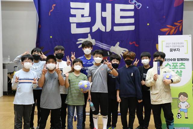 바리스타 전문과정, 메이크업 전문가 등 다양한 분야 중 충남아산은 '프로선수와 함께하는 스포츠 풋살' 과정을 담당했다. 팀에선 윤동권 선수가 강사로 나섰다.