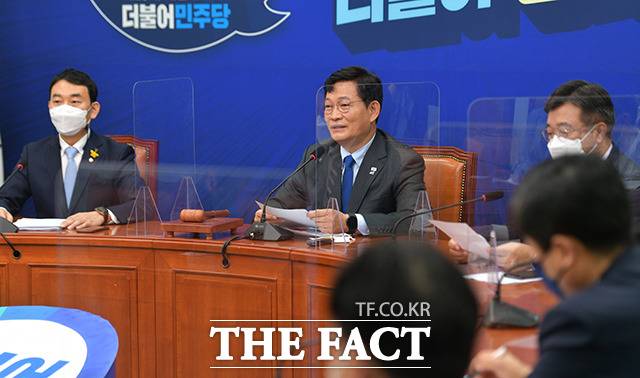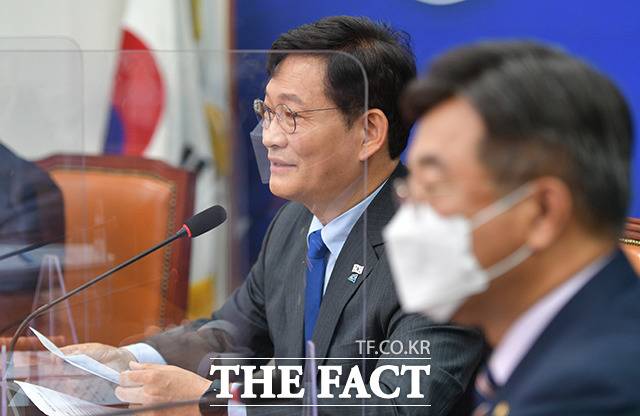 [더팩트ㅣ국회=이선화 기자] 송영길 더불어민주당 대표가 15일 오전 서울 여의도 국회에서 열린 최고위원회의에서 모두발언을 하고 있다.