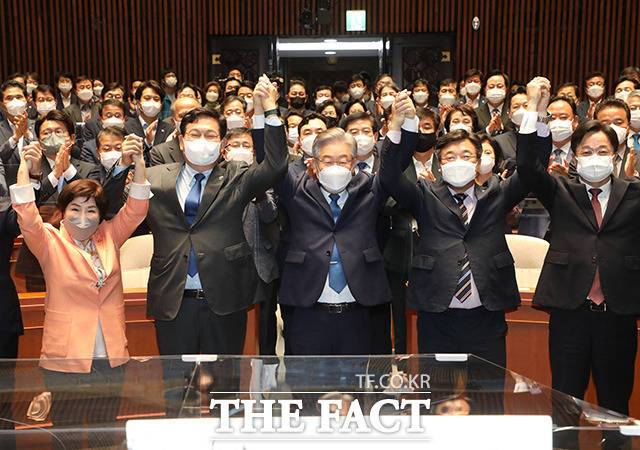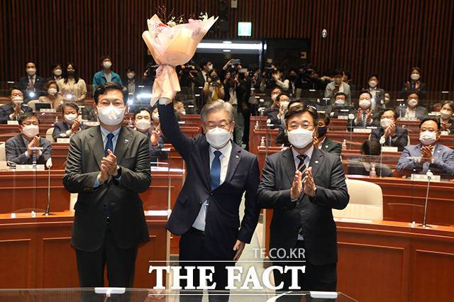 이날 의원총회에 참석한 이재명 경기지사는 "이낙연 후보를 포함해 함께 경쟁했던 민주당 후보들 모두 훌륭한 자질과 또 품격과 역량을 가졌다"라면서 "그중에서도 많이 부족한 저를 후보로 선택해주신 것에 대해 감사드리고 깊은 책임감과 실천으로 갚을 것"이라고 언급했다.