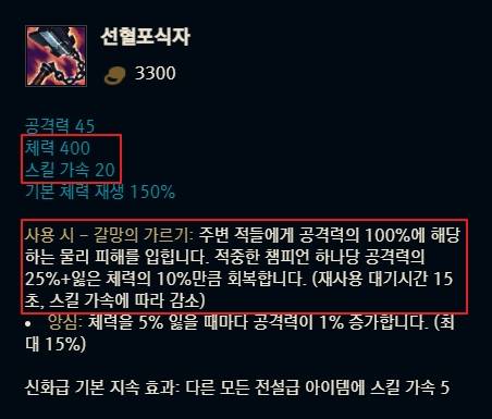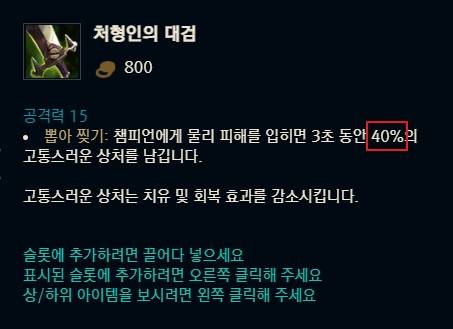 초반에는 퍼센트보다는 능력치 자체를 올려주는 것이 효율이 높습니다. 게다가 경기의 중심이 초반 상체로 향한다면 더욱 800원이나 하는 치감템을 하나 구매해야 한다는 것은 큰 부담이 아닐 수 없습니다. 완성템을 올린다고 할 때 치감템은 상대 딜러를 한 번에 잡는 데미지 자체 부족으로 이어져 현재처럼 초반에 주도권을 확실히 가져가야 하는 상황에서는 가치가 떨어지게 됩니다.