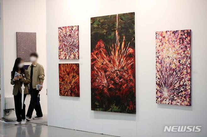 [서울=뉴시스] 김선웅 기자 = 15일 서울 강남구 코엑스에서 열린 제20회 한국국제아트페어(키아프, Kiaf)에 다양한 미술 작품이 전시되어 있다. 2021.10.14. mangusta@newsis.com
