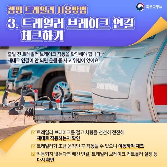 - 트레일러 브레이크를 걸고 차량을 천천히 전진해 제대로 작동하는지 확인