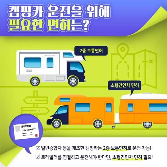 - 일반승합차 등을 개조한 캠핑카는 2종 보통면허로 운전 가능!