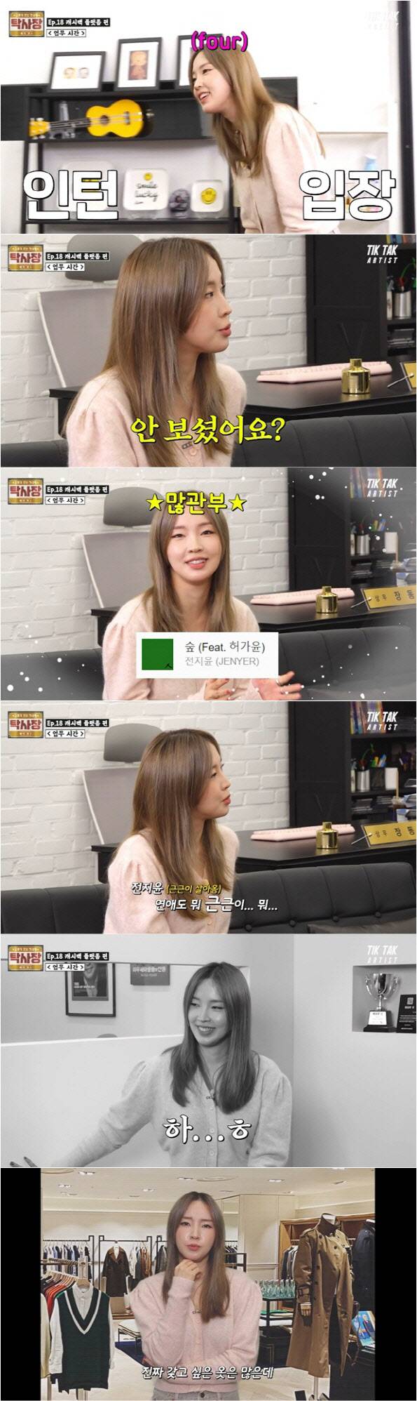이후 전지윤은 ‘인턴도 근근이 나와줄거냐’는 제작진의 물음에 말없이 미소를 지어 보여 재미를 더했다.