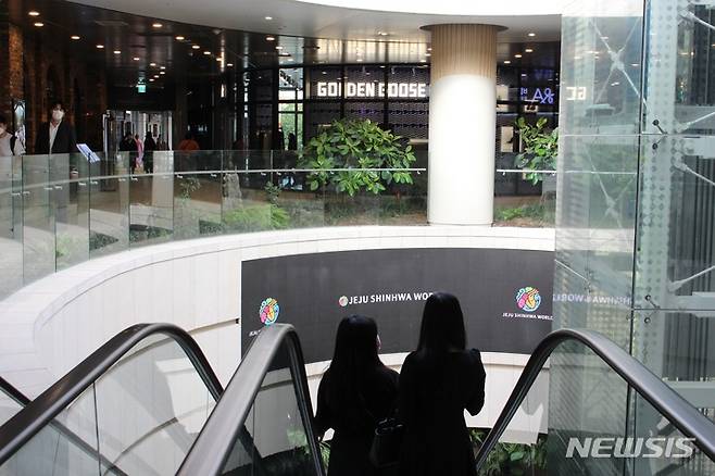 [제주=뉴시스] 양영전 기자 = 신세계사이먼 제주 프리미엄 전문점이 서귀포시 안덕면 제주신화월드 내에 15일 오전 개장해 영업하고 있다. 2021.10.15. 0jeoni@newsis.com