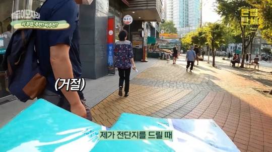 지하철역 같은 유동인구가 많은 거리에는 어김없이 전단지를 배포하는 사람들이 자리하고 있습니다. 전단지 부업을 하는 분들은 전단지가 수북이 쌓인 가방을 멀찌감치 두고 지나가는 사람들에게 꺼내서 한장씩 나눠주곤 하는데요. 그냥 지나치는 사람, 받아가는 사람, 그리고 받아서 버리는 사람 등 반응도 제각각입니다.
