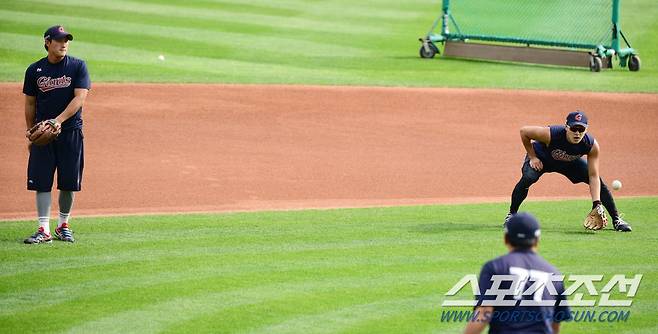 [포토] 이주찬-배성근 '빈틈없는 내야를 위해'