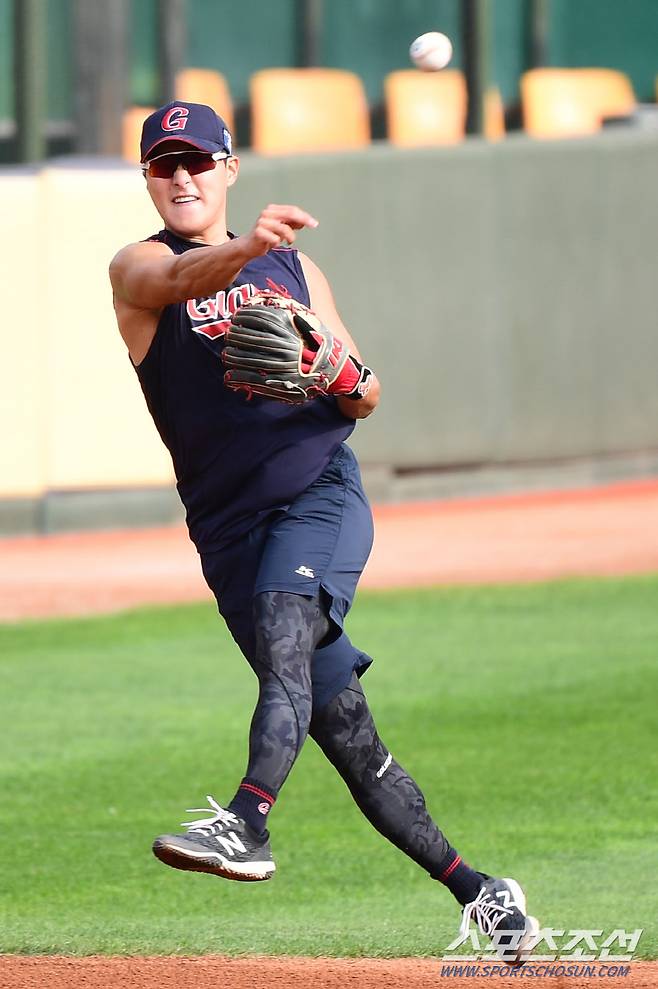 2021 KBO리그 롯데 자이언츠와 LG트윈스의 15일 부산사직야구장에서 열릴 예정이다. 경기전, 롯데 유격수 배성근이 땅볼 수비 훈련을 하고 있다. 부산=최문영 기자 deer@sportschosun.com /2021.10.15/