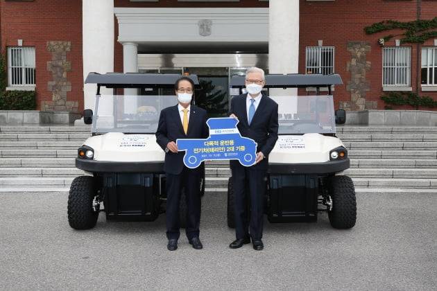 계명대(총장 신일희)와 활발한 산학협력을 하고있는 디아이씨(회장 김성문)가 15일 전기차 2대를 계명대에 기증했다.