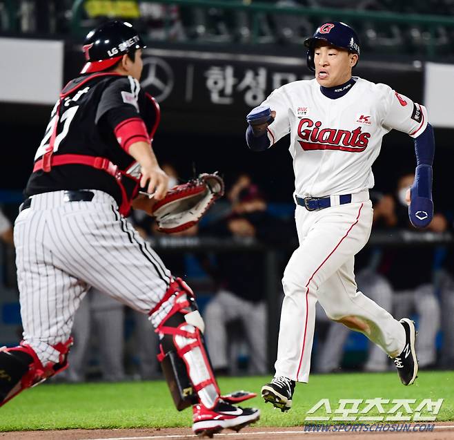 2021 KBO리그 롯데 자이언츠와 LG트윈스의 15일 부산사직야구장에서 열렸다. 롯데 손아섭이 1회말 2사 2루에서 전준우 적시타때 득점을 올리고 있다. 부산=최문영 기자 deer@sportschosun.com /2021.10.15/