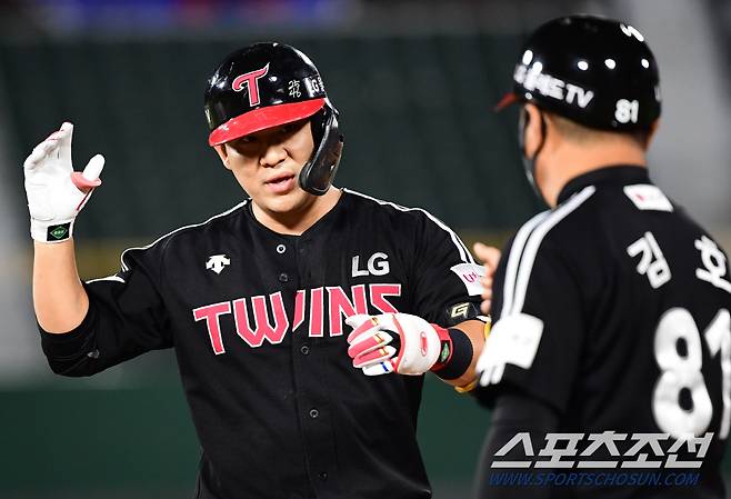 2021 KBO리그 롯데 자이언츠와 LG트윈스의 15일 부산사직야구장에서 열렸다. LG 김민성이 2회초 무사 1루에서 좌전안타를 치고 진루하고 있다. 부산=최문영 기자 deer@sportschosun.com /2021.10.15/