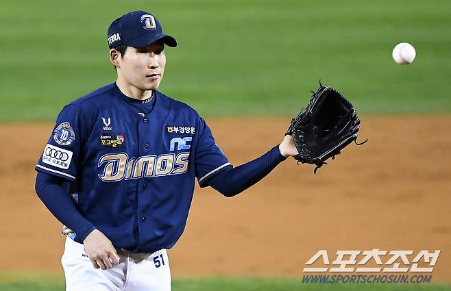 2021 KBO리그 두산 베어스와 NC 다이노스의 경기가 15일 잠실구장에서 열렸다. 1회말 NC 이재학이 숨을 고르고 있다. 잠실=박재만 기자 pjm@sportschosun.com/2021.10.15/
