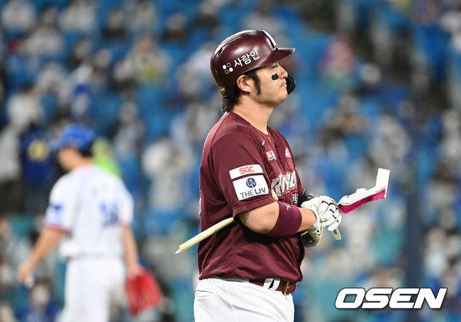 3회초 2사 1루에서 키움 박병호가 유격수 직선타 아웃으로 물러나며 아쉬운 표정을 짓고 있다. 2021.10.15 /sunday@osen.co.kr